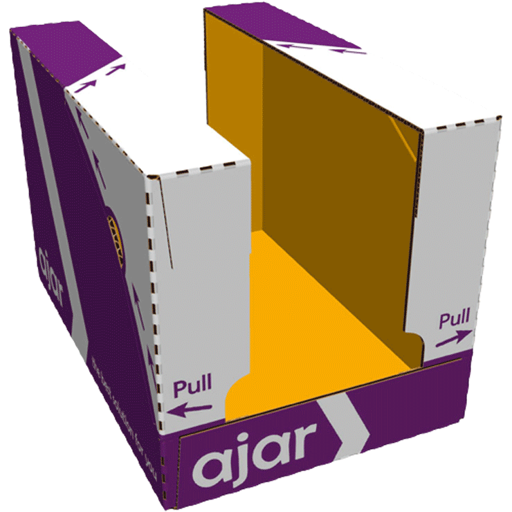 - Eenvoudig te openen door geronde perforaties en schuine vouw op het frontpaneel