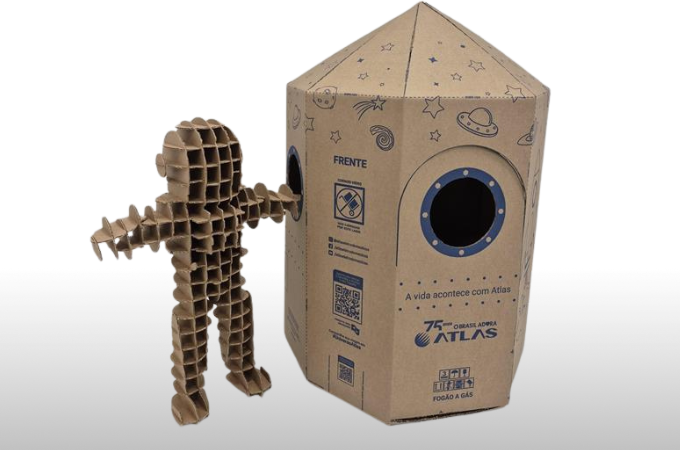 Durante uma visita da equipe Atlas à unidade da Smurfit Westrock, surgiu uma proposta ousada e criativa: transformar a embalagem tradicional do fogão em uma solução reutilizável e interativa, sem alterar o processo produtivo nem comprometer a qualidade do produto.