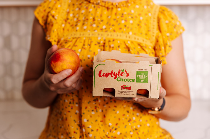 En Titan Farms, el mayor productor de duraznos en la costa este de EE. UU., introdujimos un portador de duraznos reciclable a base de fibra que reemplaza el plástico, ofreciendo a los clientes una opción práctica para llevar con asa ergonómica que refleja el compromiso de Titan Farms con la innovación y la responsabilidad ambiental.
