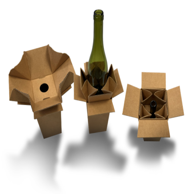 Cuando necesites enviar varias botellas de vino juntas, nuestra solución de separador 3 en 1 es perfecta. Está disponible como envase manual, preencolado o totalmente automático y puede adaptarse a diversas formas y tamaños de botellas.