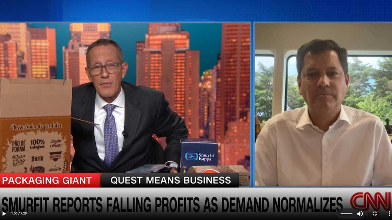 Watch the interview with our CEO Tony Smurfit when he joined Richard Quest live on CNN's 'Quest Means Business' programme. During the interview, Tony discussed our recent half-year results, the post-pandemic world, the economy and how we are achieving real and tangible reductions in carbon emissions. (Recorded 10th August 2023)