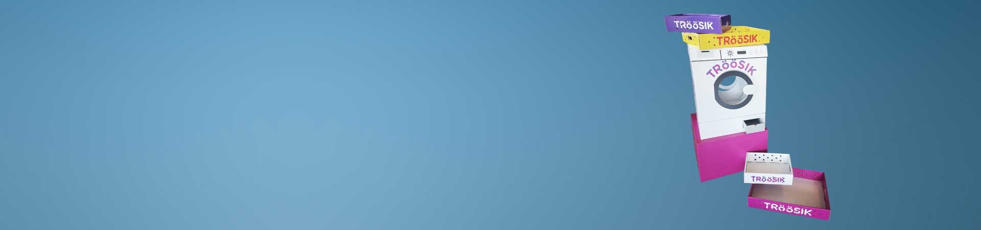 Vilniaus pergalė quería introducir un nuevo producto al mercado: las gomas 'Troosik'. Es un mercado muy competitivo, y por esto querían lanzar el producto al mercado de una manera única, creativa y sostenible. Nos contactaron para diseñar una unidad de exhibición (Display POS) para las gomas.