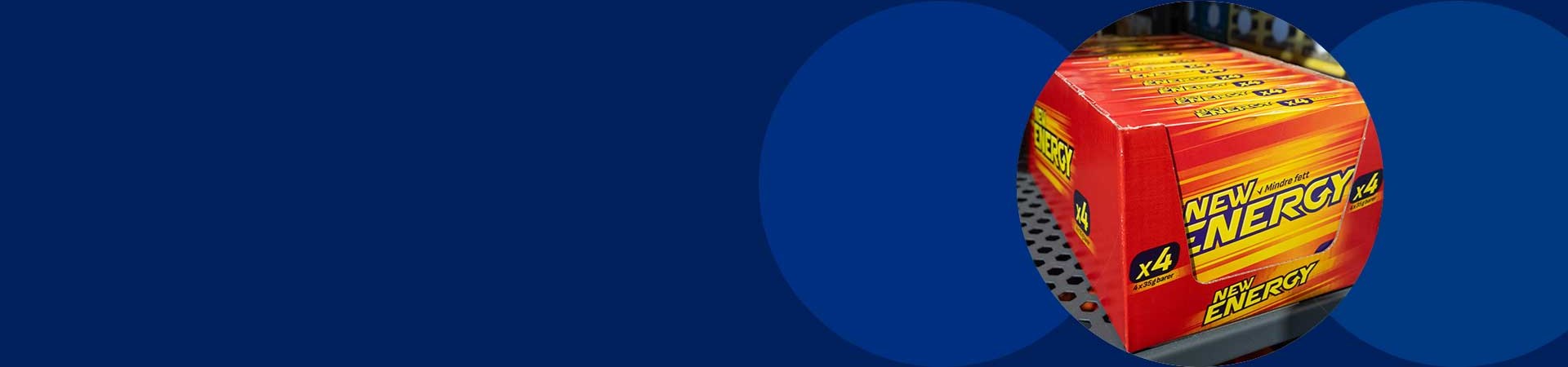 Orkla ville förbättra förpackningen för sina New Energy-chokladbars och sökte en lösning som både var effektiv och hållbar. Företaget behövde en design som kunde skydda produkterna under transport och samtidigt fungera som en iögonfallande exponering i butik. Tillsammans utvecklade vi ett förpackningskoncept som uppfyllde dessa mål samtidigt som vi effektiviserade logistiken och minskade materialanvändningen.
