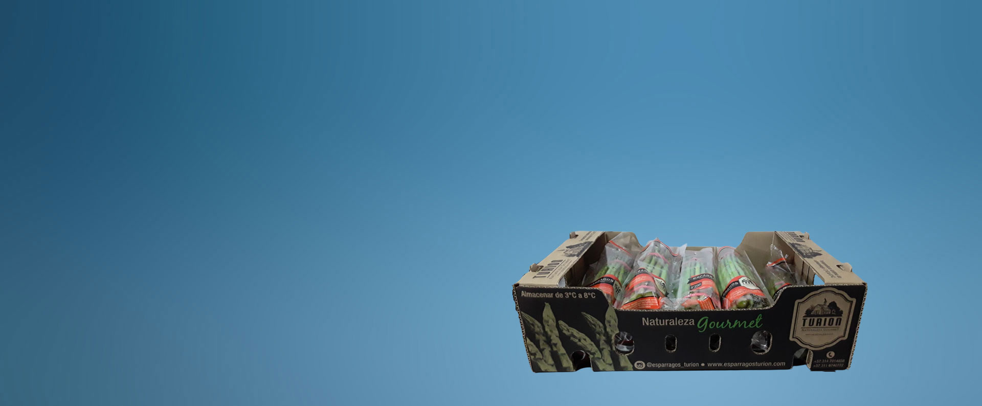 Turion, un productor de espárragos en Colombia, utilizaba originalmente cajas de plástico para sus productos. Sin embargo, la pandemia generó sobrecostos y retrasos en las entregas. Nuestro reto era desarrollar una solución a base de papel que pudiera resistir las duras condiciones de la cadena de suministro, incluida la exposición al 90% de humedad, y que también sirviera de exhibición en el punto de venta.